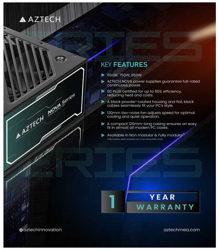 AZTECH NOVA 650W 80 Plus White Non-Modular is a power supply unit (PSU) designed to deliver reliable and efficient power to your computer components.