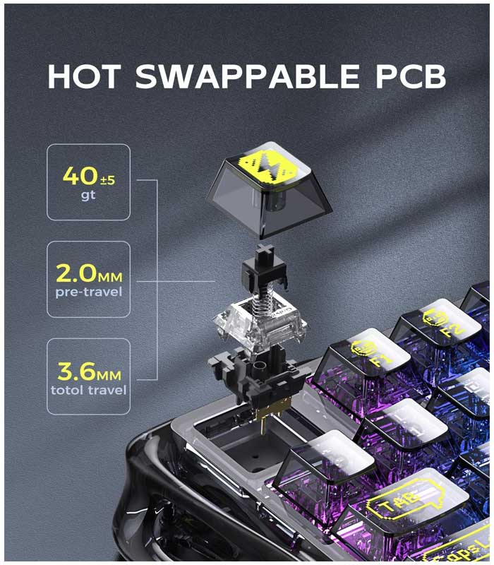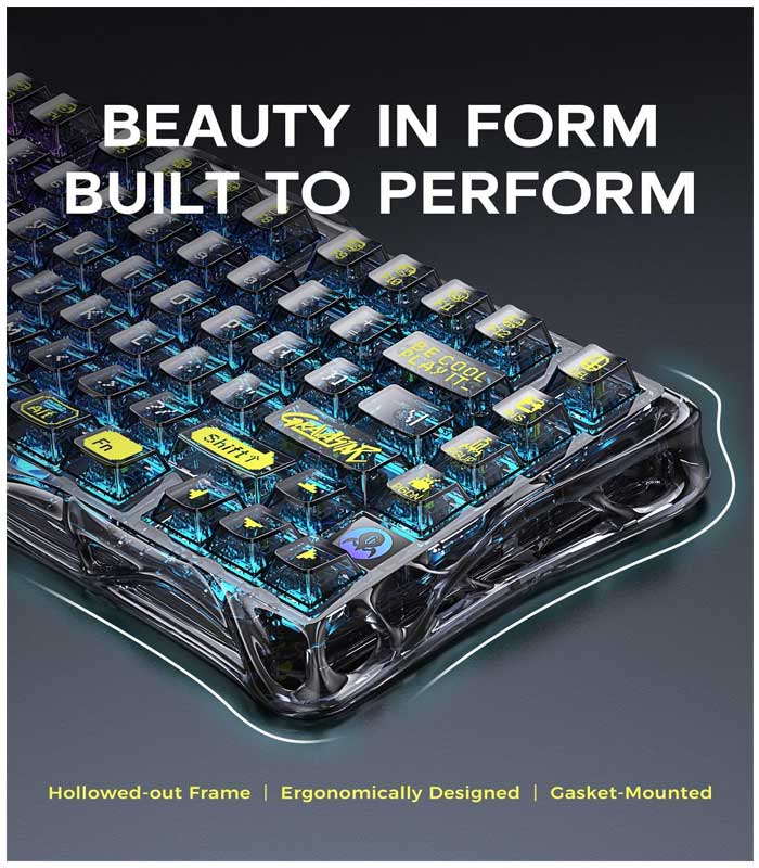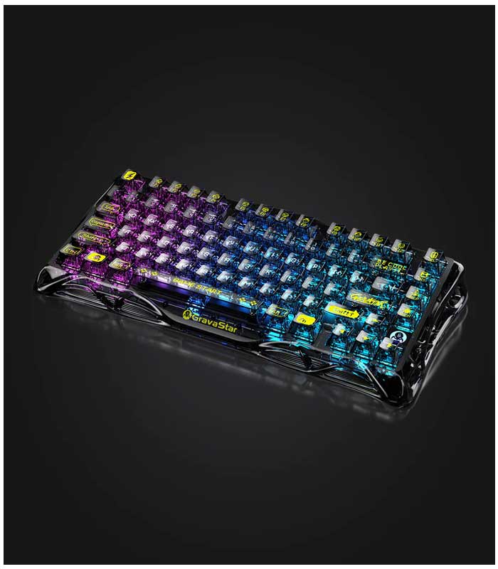 - ⌨Stylish and Unique Design: The GravaStar Mechanical Keyboard features a hollow and skeletal design that breaks away from traditional keyboard aesthetics, making it a standout piece on any desk. Constructed from durable PVC material, the transparent frame and keycaps maximize the cool backlight RGB effects and wear-resistant appearance.