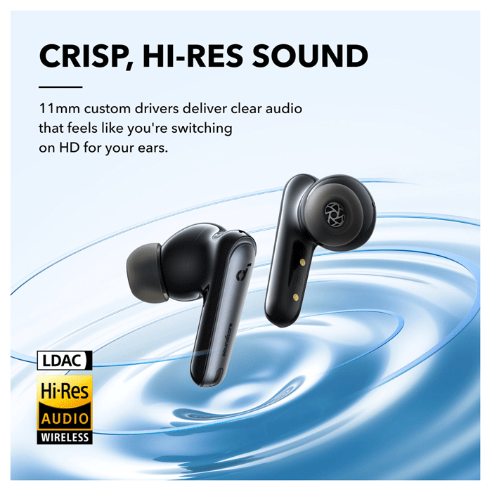 𝐒𝐭𝐮𝐝𝐢𝐨-𝐋𝐞𝐯𝐞𝐥 𝐇𝐢𝐠𝐡-𝐅𝐢𝐝𝐞𝐥𝐢𝐭𝐲 𝐌𝐮𝐬𝐢𝐜: Feature the enhanced ACAA acoustic architecture, a 10.5mm bass driver, a titanium-coated tweeter, and a digital crossover for peak driver performance. Indulge in crisp, full-bodied sound perfected with nuances.