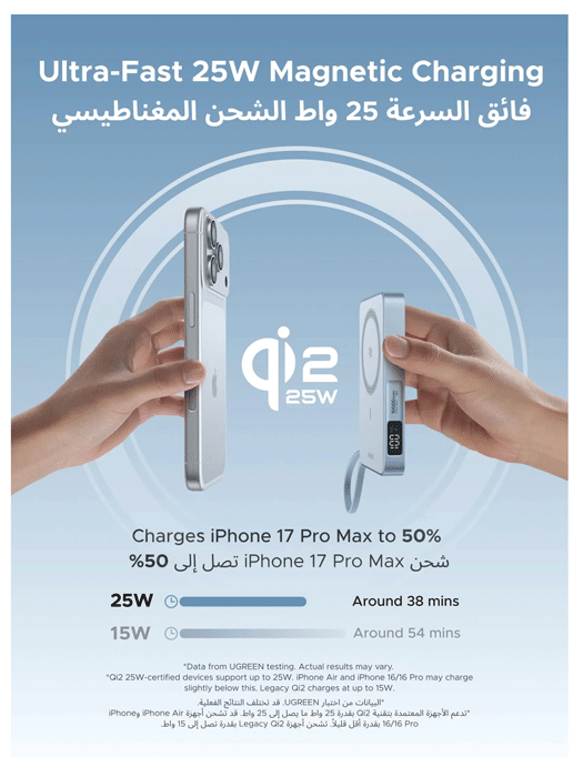 Special features Built In 30W USB C Cable, Digital Display, Overcurrent, Overvoltage, Overheating, Short Circuits Protection, Pocket Slim Size, Qi2 25W Magnetic Wireless Charging(Designed for iPhone 17 Series)