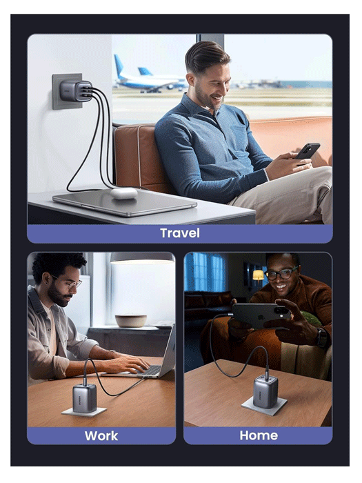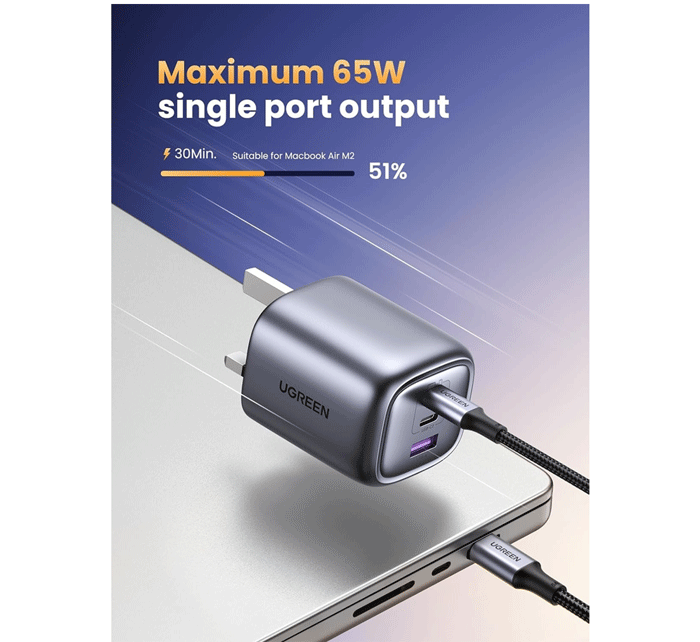 【Energy Saving, Environmental friendly】UGREEN Nexode 65W GaN charger enjoys the innovative Hybrid Power Solution, which increases the power conversion rate to 95%, and provides industry-leading efficiency to avoid wasting energy.